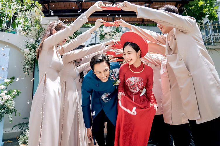 - Áo Dài Cách Tân: Trang phục cưới độc đáo nhất vẫn là áo dài, nhưng được biến tấu về chất liệu (lụa, organza) và kiểu dáng (cổ thuyền, tay bồng) để phù hợp với không gian hiện đại hơn.